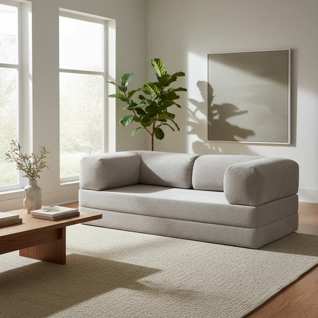 La transformation est incroyablement simple et intuitive. En quelques gestes, votre canapé se convertit en un lit confortable, parfait pour accueillir des invités. Les sangles intelligentes assurent une stabilité parfaite dans toutes les configurations.